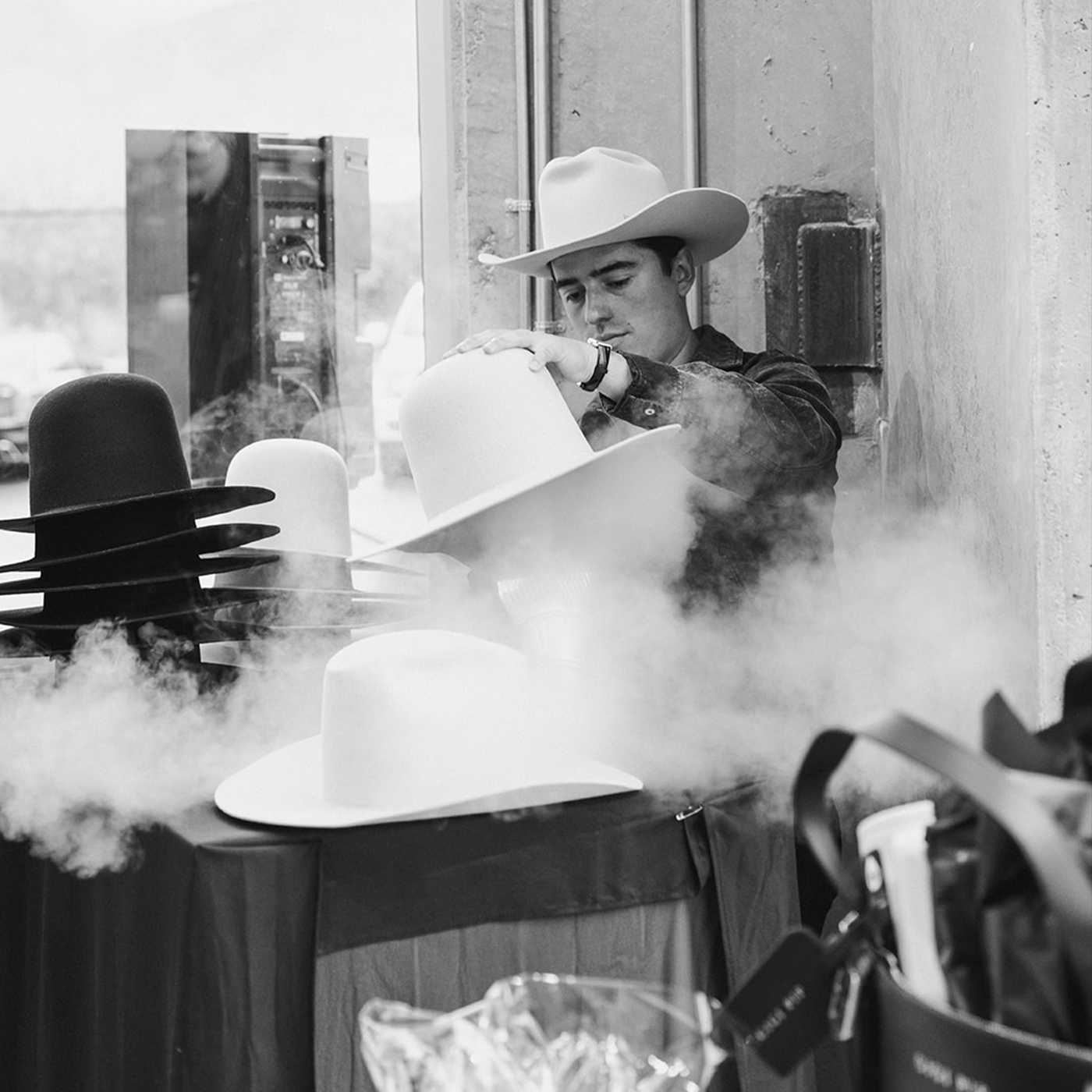In this more intimate experience, one of our master hat-tenders will work closely with you to create your hat from start to finish. Your own open-crowned hat body will take the shape of your choice, then we'll help tailor your personal fit, add custom trims, burning, multiple branding options, and more.