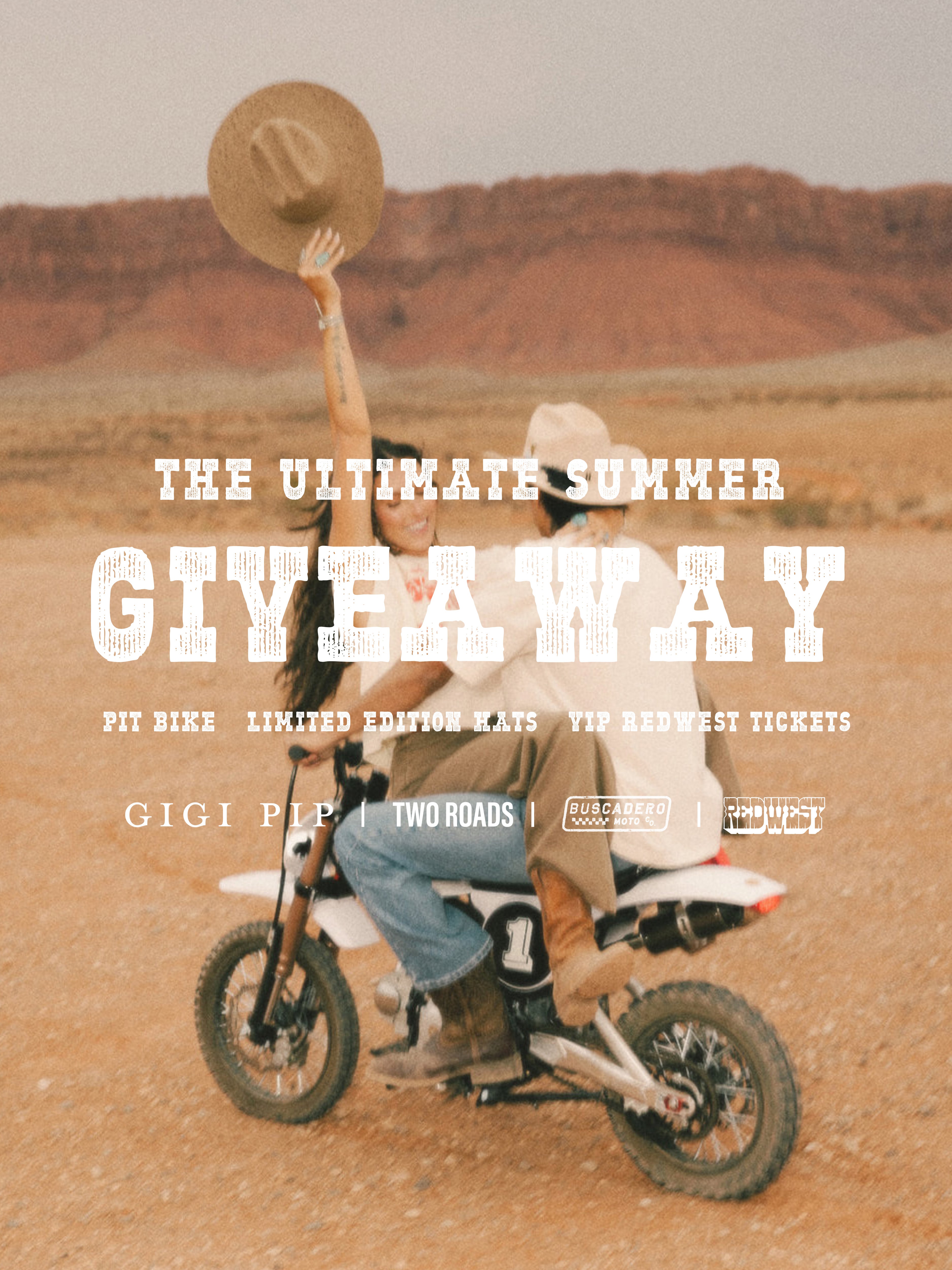 Gigi Pip, Two Roads & Buscadero to create an extremely limited run of collab hats, celebrating the western spirit and and vintage motocross culture. To celebrate this collab, we are giving away a vintage pit-bike from Buscadero, Limited-Edition collab hats from Two Roads & Gigi Pip and VIP Tickets to the Redwest Music Festival. Enter Below!